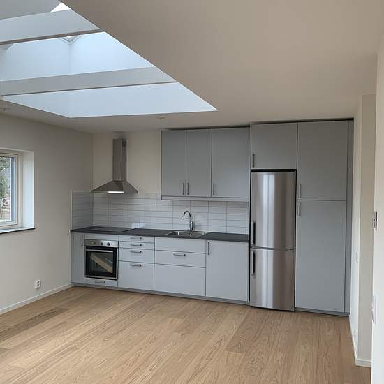 Two-room apartment built in 2019, about 52 m². Bright and fresh, one floor up in a quiet area. There is a small outdoor space on the balcony walkway with sea views. Fiber internet is installed in the apartment. Private washing machine and tumble dryer. Private parking.
