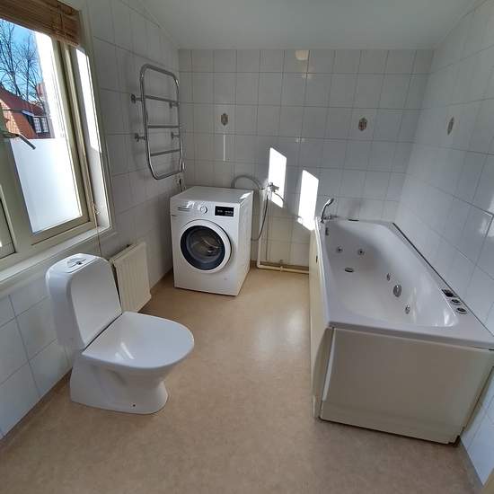 Balkong, Jacuzzi, vid Vattentornet Perfect for a company or students who want to live in central Kalmar and close to Linnaeus University and the college. + Location: By the library, 500 m to Linnaeus University / the college At Kalmar Library: Company/Student apartment 175:-/ person and day Available from 31 December 2025 2 bedrooms / 1 living room with sofa bed and kitchen. Max 2–3 people. + Bathroom + Jacuzzi + Washing machine + 2 bedrooms furnished with 180 cm / 140 cm beds + Living room with sofa bed + Bedside tables, chest of drawe...