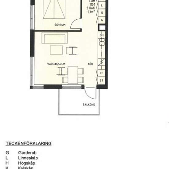 Kvadratsmart 2:a med öppen planlösning mellan kök och vardagsrum. Gott om förvaring i köket, diskmaskin. Helkaklat badrum med dusch och handdukstork. Rymlig balkong!