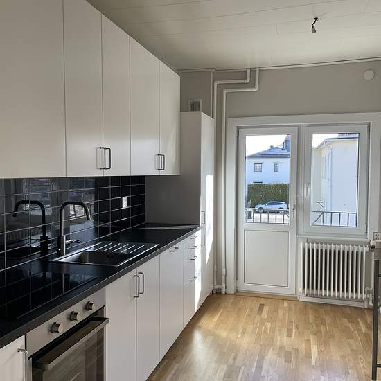 Ljus och trivsam tvåa om 70 kvm med balkong. Renoverat kök i modern stil och genomgående ljusa ytskikt. Tvättmaskin och diskmaskin finns installerat i lägenheten. Gott om förvaring i form av flera garderober. Parkering finns att hyra på innergården.
