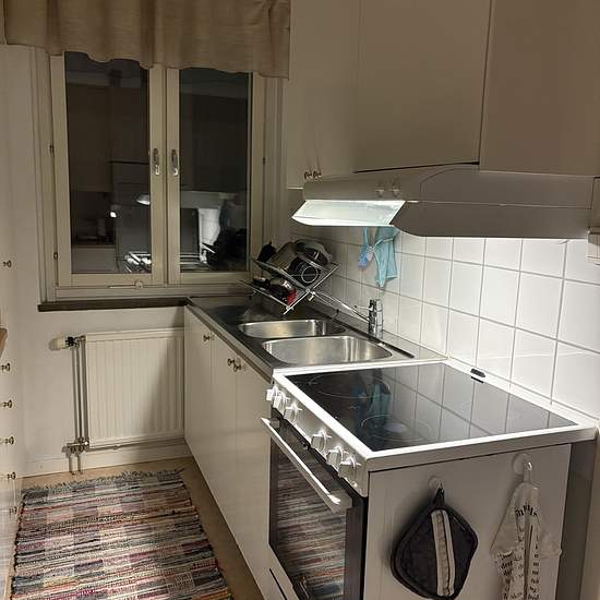 Lägenheten ligger på Bellevuegatan 5B, våning 2 (av 3) på Bellevue. Den har 2 rum och kök, på totalt 60 kvm. Badrummet har målad våtrumsmatta, våtrumstapet och badkar. Köket har vita luckor, delad kyl och frys. Ljus och fin lägenhet (vitmålad hall och vardagsrum) och det är ekparkett i vardagsrum. Lägenheten har balkong. Det finns möjlighet att hyra p-plats i nära anslutning till fastigheten. Hyran är på 8340kr / månad (2026) vilket inkluderar värme, varm- & kallvatten, sophantering samt kostnad för tvätt och tv-kanaler (grundutbudet)....