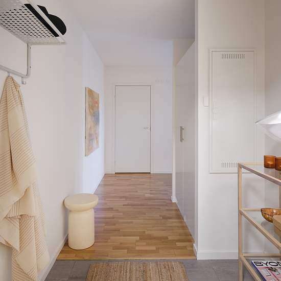 Denna tvåa på våning 1 är ljus och fräsch med vitmålade väggar som standard, genomgående parkettgolv och vita lister. I hallen ligger praktiskt klinkergolv och vidare in i hemmet hittar du ett snyggt kök från Marbodal med vita skåpsluckor. Ovan diskbänken sitter vitt kakel, både funktionellt och snyggt. Köket är utrustat med bland annat induktionshäll, diskmaskin, mikrovågsugn samt kärl för sopsortering. Det stilfulla badrummet har grått klinkergolv och vitt kakel på väggarna. I badrummet finns både tvättmaskin och torktumlare för en bekvä...