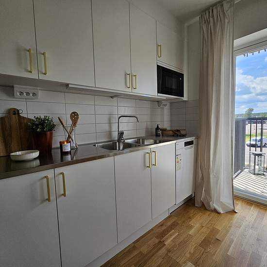 Please note! Standard rent 8,206 SEK/month (See Terms). The apartment • Bright, white-painted walls and elegant oak parquet • Open floor plan with room for your personal style The kitchen • Fully equipped with dishwasher, stove with ceramic hob, built-in microwave, and fridge/freezer • Attractive and practical design The bathroom • Fully tiled with shower screens, mirrored cabinet, and vanity unit • Fresh and easy to maintain Technology & amenities • Open fiber – choose your own internet provider • Telia’s basic package of TV channels is...