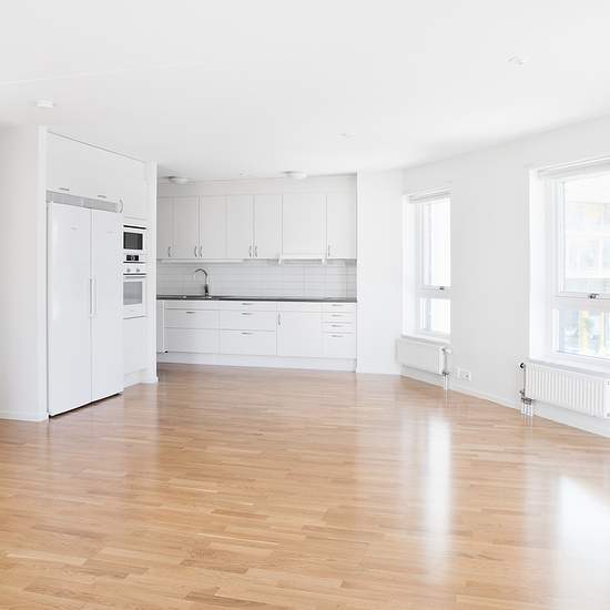 Welcome to this lakeside one-bedroom apartment with a balcony! The home is bright and fresh with white-painted walls as standard, continuous parquet flooring and white moldings. The hall has practical tiled flooring and space for storage in wardrobes. Further into the home you’ll find a stylish kitchen from Marbodal with white cabinet doors. Above the sink there is white tile—both functional and attractive. The kitchen is equipped with a dishwasher, microwave and bins for waste sorting. The tasteful bathroom has grey tiled flooring and whit...