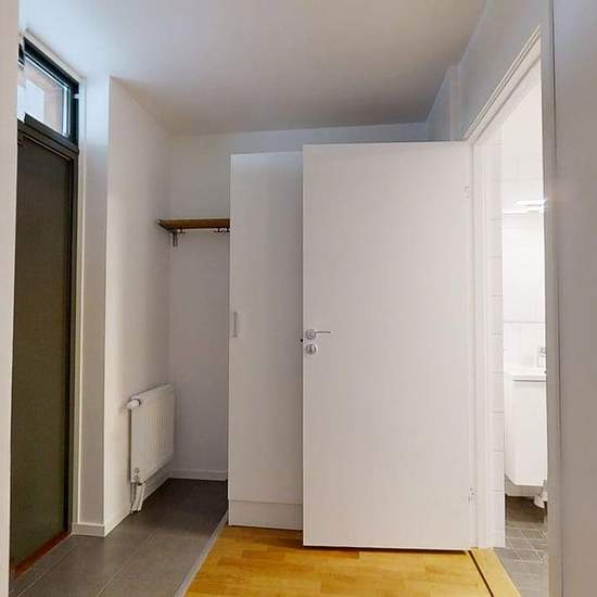 THE APARTMENT Newly built apartment of good standard with a ceiling height of approx. 2.50 m, continuous oak parquet and white-painted walls. Window sills in natural stone. The interior doors in the apartment are smooth and white-painted. The kitchen is manufactured by Vedum and consists of white cabinets with smooth doors in the "Annika" model. The worktop in the kitchens is a dark-toned laminate. The appliances are white and made by Cylinda. The kitchen is well equipped with fridge, freezer (in some apartments a combined fridge/freezer), h...
