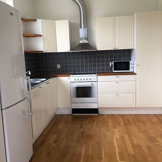 We rent out an apartment with a private entrance in our turn-of-the-century house located in Egnahem, Kristianstad, close to the hospital, bus, and train connections. With the apartment, you get access to part of the yard if you would like, and you have your own parking space, and the bicycle can be stored in the storage room. We are a family with children and have a dog ourselves, which is sometimes outside in the yard. The apartment has high ceilings and includes a smaller bedroom where you can fit a double bed but is primarily suitable fo...