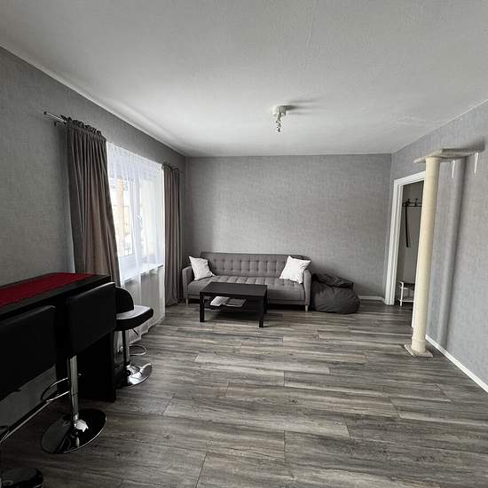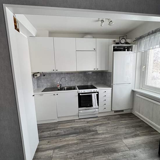 A newly renovated apartment for rent; it has a good layout and space. It is easy to get anywhere by public transport. It takes about 5 minutes to walk to the train station and 2 minutes to the bus station. There are shops, a school and daycare in town. Internet and electricity are not included in the rent. Pets can be discussed. Service fee for tenant: 476