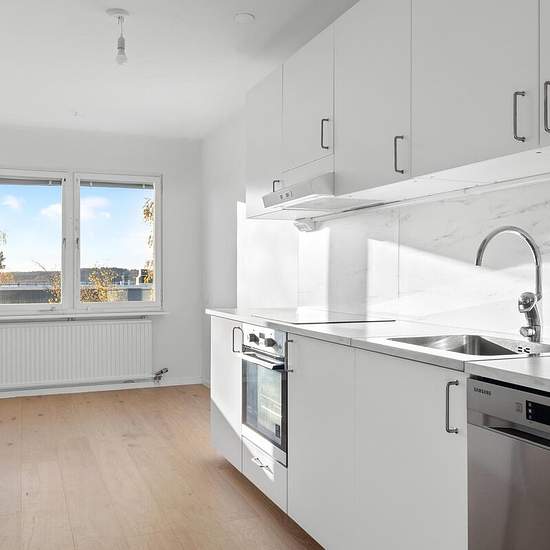 Nice and quiet area, best for families. Bus station 250 m Health center 250 m Coop store 250 m Lidl store 600 m Biltema store 800 m Byggmax store 800 m Service fee for tenant: 714