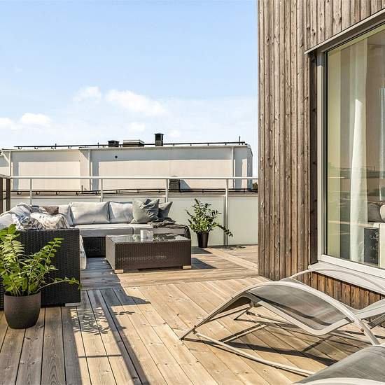 A two-room apartment in Kungsängen, Norrboda. 73 sqm with a private roof terrace. Very good layout. Service fee for tenant: 862