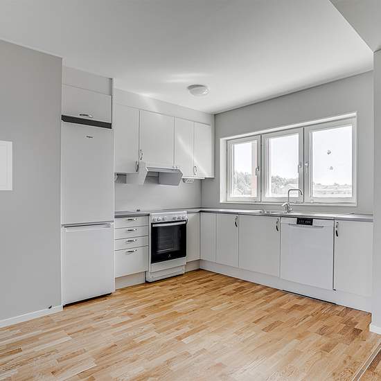 Bright apartments with large floor-to-ceiling windows. We have chosen light gray for the living room, kitchen, and hall, and light beige for the bedroom. Parquet floors, fully tiled bathrooms with washing and drying facilities. The apartments are available in sizes of 1 to 3 rooms plus kitchen. The building has generous balconies and some corner apartments have two balconies. This is a non-smoking property. Heating is included in the rent. Hot and cold water are charged according to actual consumption; household electricity is charged acco...