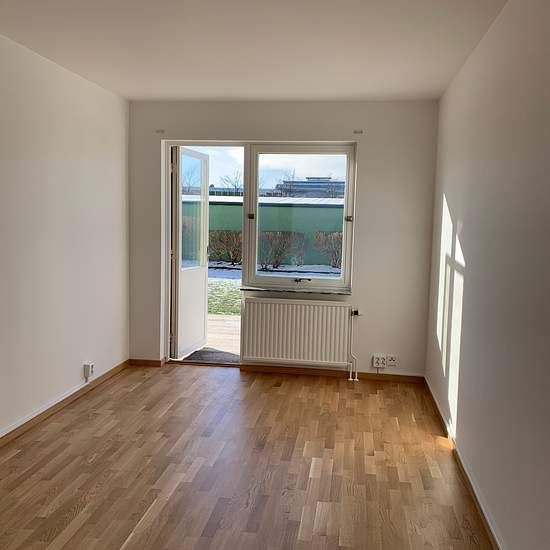 Well-planned one-bedroom apartment of 43 sqm with spacious ground-floor patio ABOUT THE APARTMENT Welcome to a pleasant two-room apartment of 43 sqm located on the ground floor with its own patio. In the hallway you are met by practical tiled flooring at the entrance, and further into the apartment there is parquet in all rooms. The white-painted walls give a bright, fresh and neutral impression that is easy to furnish to your own taste. The kitchen is white with matching tiles and offers plenty of work surface and storage, as well as space...