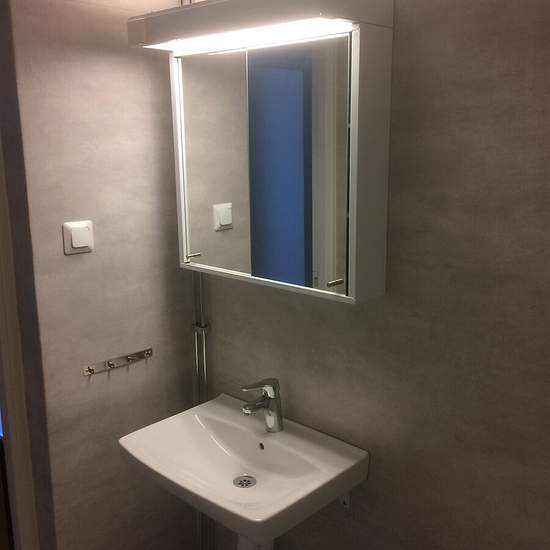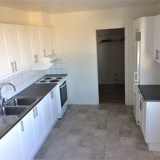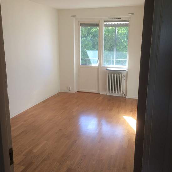 The apartment will be available shortly. Bright and nice with a balcony facing the inner courtyard. The grocery store is one block away, as are the bus station and the elementary school. The apartment is two flights up.