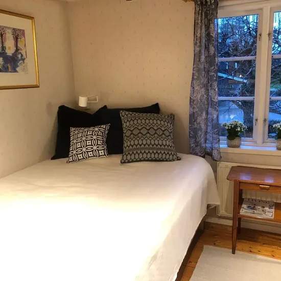 Mysigt extra hus (35 m2) på vår villatomt med fullt utrustat kök och badrum samt separat sovrum. Wifi ingår. Hyrs ut möblerat. Tvättmöjlighet finns hos hyresvärden. El tillkommer. Lämpligt för singelhushåll ex student. Ledigt från 1 dec 2025. Lugnt område med skog och badsjö i närheten. Landvetter centrum har bland annat mataffärer, apotek, träningsmöjligheter och bra förbindelser in till Göteborg. Med Expressbuss tar det 15 min in till Korsvägen. Det finns tillgång till p-plats och uteplats.