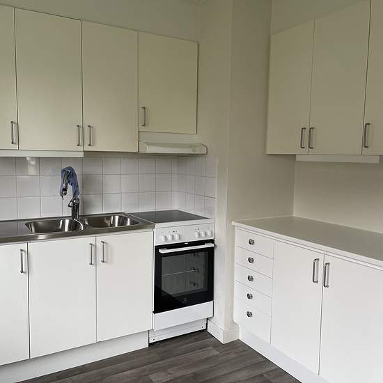 Open floor plan with a large living room with windows facing two different directions. Kitchen with good work surfaces. Large bedroom with space for a 180 cm double bed. We cannot be held responsible for any errors in the listing. Rent 2025