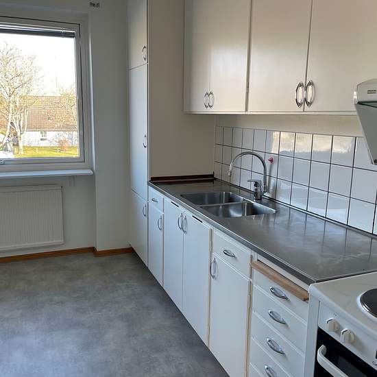 Bright lovely 2-room corner apartment on the first floor. Kitchen with gray vinyl flooring, with space for a kitchen table for 6 people and good work surfaces. The bedroom and hallway have the same color flooring and light walls. Living room with parquet flooring and a bay window. Bathroom with a window. Balcony. Fiber is installed in the building. We reserve the right for any typographical errors. Rent 2025