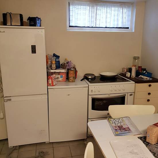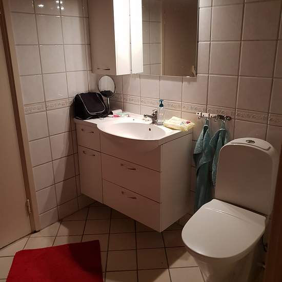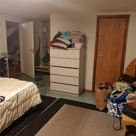 Hello! We are renting out our basement. 2 large rooms, private kitchen/laundry room, private toilet, private entrance. Heating, electricity, internet and parking are included in the rent. We have 2 dogs and 2 cats. The cats like to be in the basement because there is an open staircase. The dogs are only on the ground floor where we live — 3 people (one of whom is 9 years old). Large walk-in closet and large pantry/food cellar that we share. 170 meters to the nearest stop. Renting out because we don't need all the space. 7,000 kronor per m...