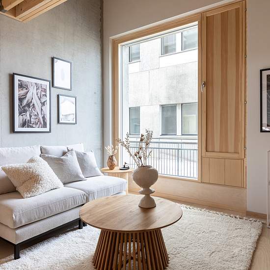 Welcome to an architect-designed apartment with nearly 5 meters of ceiling height! The apartment is newly built, completed in May 2022, and features a modern and tasteful interior of good quality. The apartment is available for move-in from 1 March 2026. The kitchen is stainless steel with soft-closing drawers. The bathroom has fully tiled walls and waterproof bathroom flooring. The apartment includes either a washing machine and tumble dryer, or a washer-dryer combo. The walls are either painted white, raw concrete, or birch plywood. Th...