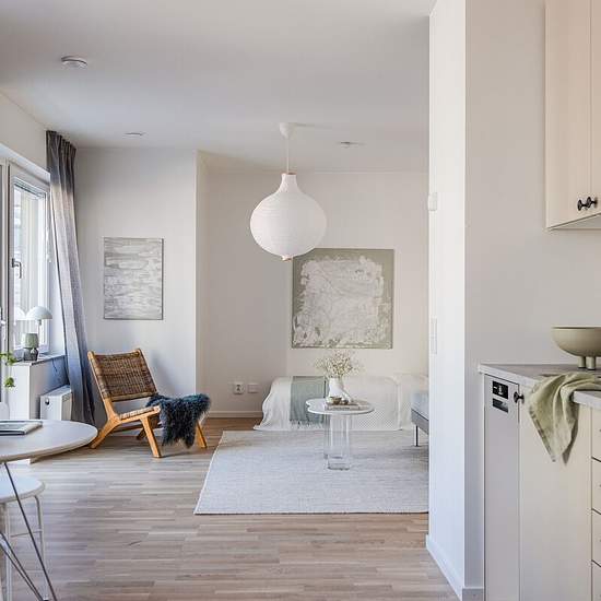 Välplanerad tvåa med fransk balkong och fönster åt två väderstreck! Välkommen till ditt nya hem i ett modernt och smakfullt bostadsprojekt med lägenhetsstorlekar från 1 till 4 rum och kök. Majoriteten utgörs av yteffektiva ettor och tvåor, men för dig som söker något extra finns även rymliga fyrarumslägenheter i etage med härlig radhuskänsla. I hallen möts du av ett praktiskt klinkergolv och goda avhängningsmöjligheter. Genomgående vitlaserad ekparkett och ljusa väggar skapar en stilren och harmonisk helhet. Köket från Marbodal förenar...
