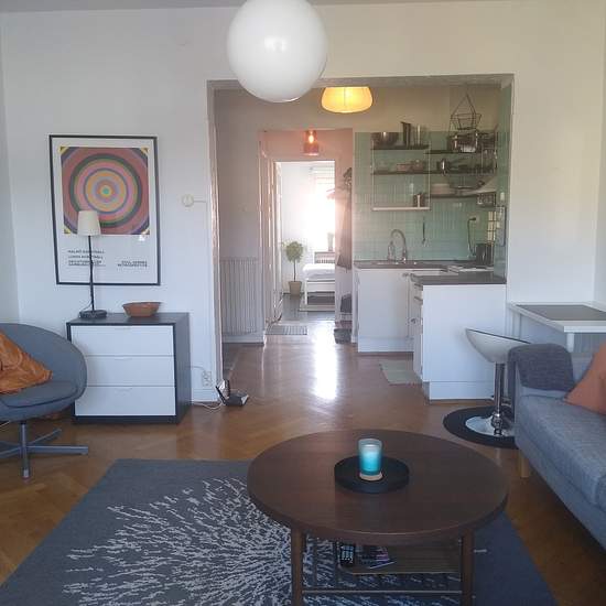 I am renting out my lovely two-room apartment with a view over Folkets park and the Moriska from the living room, completely private and west-facing with evening sun. The bedroom in this through-apartment faces a leafy inner courtyard with a patio. The apartment is three flights up. A 9-minute walk to Möllevångstorget, 12 minutes to the Triangeln shopping center. 3 minutes to Coop and a bus stop where bus 5 takes you around all of Malmö. The rent includes electricity, Internet, TV, furniture and a basement storage unit. Rented to someone ...