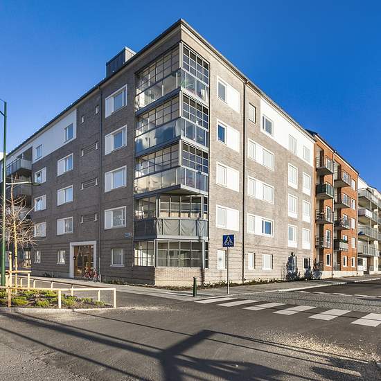 Bostad Lägenheten hyrs ut i befintligt skick. Vi vill informera om att vissa ytskikt, såsom väggar med äldre lagningar, kan förekomma och bedöms som normalt slitage. Hyran avser 2025 års hyresnivå. Entré Innanför dörren ligger grå klinker som övergår i lackad ekparkett. Hatthylla och vitmålade väggar. Platsbyggd förvaringsgarderob. Säkerhetsdörr. Badrum Grå klinker på golvet och vita helkaklade väggar. Draperiskena, handdukstork och handfat med spegel ovanför. Bänkskiva i laminat med tvättmaskin samt torktumlare undertill och ett över...