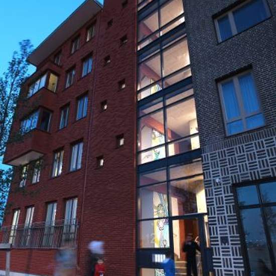 Balkong kombinerad med egen del i loftgång in mot gården.