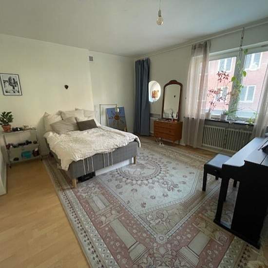 Bright and pleasant apartment in a well-connected location a short distance from Dalaplan. White kitchen with stove, extractor fan and fridge/freezer, as well as space for kitchen furniture. The bedroom has room for a double bed. The living room has white walls and parquet floors. A fee for cable TV applies, currently SEK 85/month. A deposit equivalent to two months' rent is paid before moving in (refunded upon moving out). Floor plan not available. We reserve the right for any errors in the advertisement. REQUIREMENTS: gross income from wo...
