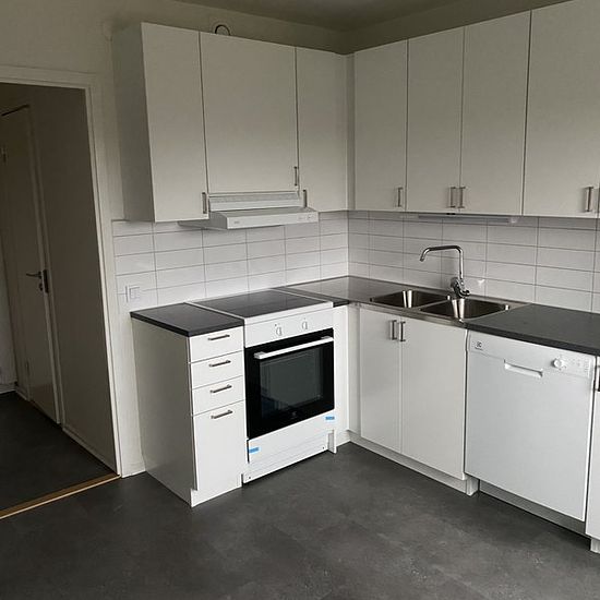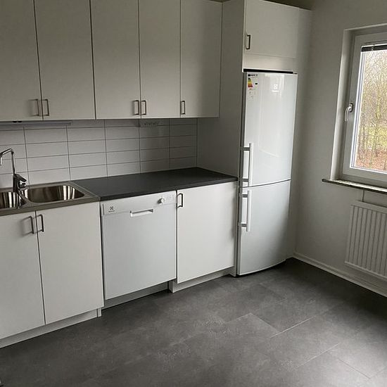 About the residence Welcome to apply for a nice 2-room apartment of 61 sqm at Docentgatan 2 A in Hermodsdal! The apartment will undergo a total renovation before move-in and will offer a modern and stylish living space. The residence is located on the 2nd floor of 3. The hallway and kitchen will have dark gray vinyl click flooring, and in the hallway there are wardrobes providing good storage options. The kitchen is equipped with white kitchen cupboards, dark gray countertops, and new appliances such as a dishwasher, extractor fan, ceramic ...