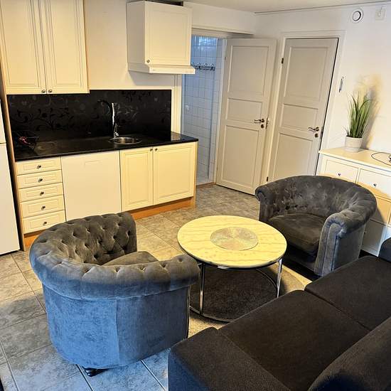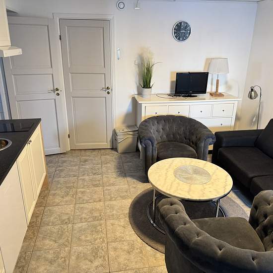 Apartment for rent in the same building in a quiet residential area. The apartment is located on the ground floor and has a living area of approximately 44 sq.m. Access is via a stairwell. There are a total of three apartments in the property. The apartment has an open-plan layout between the kitchen and living room, creating a bright and functional home. It comprises two bedrooms, a shower room with laundry facilities, and two spacious storage rooms that can advantageously be used for storage or fitted out, for example, as a wardrobe or wa...
