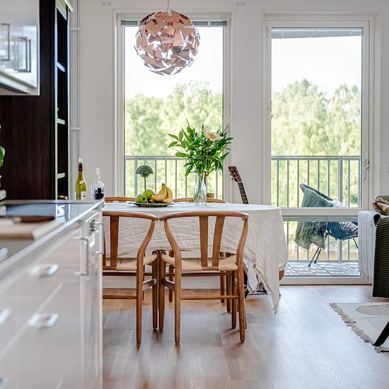 Nyproducerad 2:a om 54,5 kvm på plan 2 med ingång från loftgång. Vitt kök från Vedum. Köket är utrustat med diskmaskin, hög-skåp med ugn och micro, induktions-häll samt kyl/frys. Kök och vardagsrum med öppen planlösning samt utgång till balkong om 11 kvm mot gården . Sovrum med garderober. Hel-kaklat badrum med våtrums-matta, dusch-hörna med glasdörrar och tvätt-pelare med tvättmaskin och torktumlare.