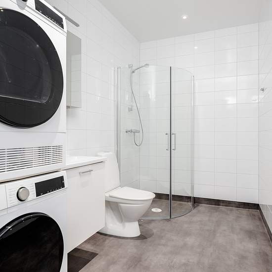 Nyproducerad 2:a om 54,5 kvm på plan 1 med ingång från loftgång. Vitt kök från Vedum. Köket är utrustat med diskmaskin, hög-skåp med ugn och micro, induktions-häll samt kyl/frys. Kök och vardagsrum med öppen planlösning samt utgång till balkong om 11 kvm mot gården . Sovrum med garderober. Hel-kaklat badrum med våtrums-matta, dusch-hörna med glasdörrar och tvätt-pelare med tvättmaskin och torktumlare.