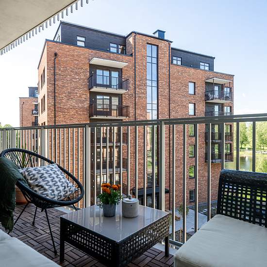 Nyproducerad 2:a om 54,5 kvm på plan 2 med ingång från loftgång. Vitt kök från Vedum. Köket är utrustat med diskmaskin, hög-skåp med ugn och micro, induktions-häll samt kyl/frys. Kök och vardagsrum med öppen planlösning samt utgång till balkong om 11 kvm mot gården . Sovrum med garderober. Hel-kaklat badrum med våtrums-matta, dusch-hörna med glasdörrar och tvätt-pelare med tvättmaskin och torktumlare.