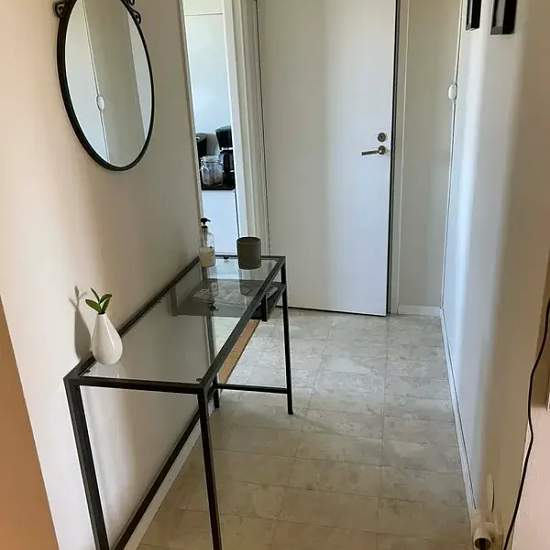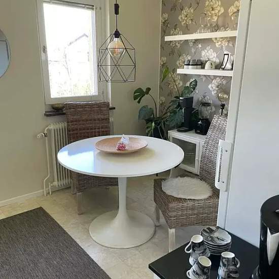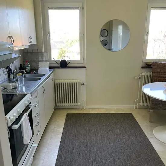 I am renting out my one-bedroom apartment to try living with my boyfriend. It takes about 20 minutes by bus to get to Gothenburg city center. There is a neighborhood shop a couple of hundred meters away. The apartment is very nicely situated, close to lakes and nature. Electricity and broadband are not included in the rent. Parking is available if desired for about 400 SEK per month. Pets and indoor smoking are not allowed. There is no dishwasher. The laundry room is four flights down.