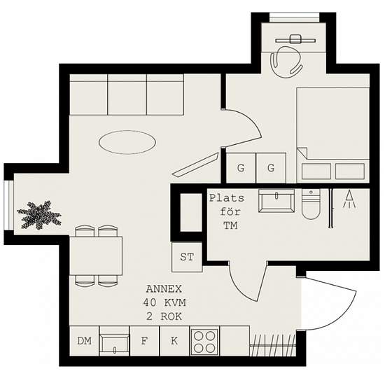 2 room apartment in Motala