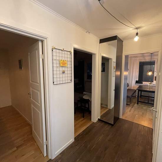 Newly renovated bright corner apartment with an enclosed balcony. Nice view towards, among others, Järla Lake, Hammarbybacken and the Globen area. L-shaped entrance hall, walk-in closet, bedroom, large living room and kitchen with a large dining table. Bathroom with washing machine and tumble dryer. Nature is around the corner with the Nacka Nature Reserve and lovely walking paths along Svindersviken. Hammarby Sjöstad is also nearby. Good transport connections by bus and the Tvärbanan light rail. A short walk to Sickla shopping center. There...