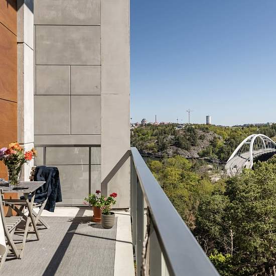 Exclusive one-bedroom apartment with a modern, bright and airy layout. High, consistent standard throughout with fantastic amenities. Spacious bathroom with bathtub and a window that lets in natural light. The large south-facing balcony is perfect for both relaxation and socializing. Here you live in a calm and secure area. Enjoy the best of both worlds: the tranquility of Kvarnholmen and the proximity to the city. Optimal location with direct access to water, nature and public transport. SL commuter boats easily take you to Nybrokajen/Djur...