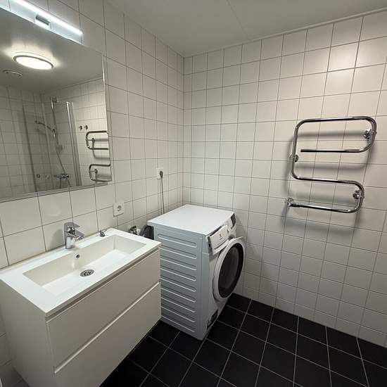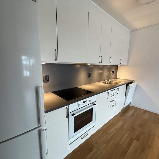 Bright two-room apartment with balcony and fully tiled bathroom Welcome to this fresh and well-planned two-room apartment with practical spaces and good storage options. The apartment offers a pleasant living environment with modern details and good functionality. The hallway is tiled and has good storage. The kitchen is nice and fresh and equipped with a dishwasher, which makes everyday life easier. The bedroom is spacious and has good storage options. The apartment also has access to the balcony/patio, which provides a pleasant place to...