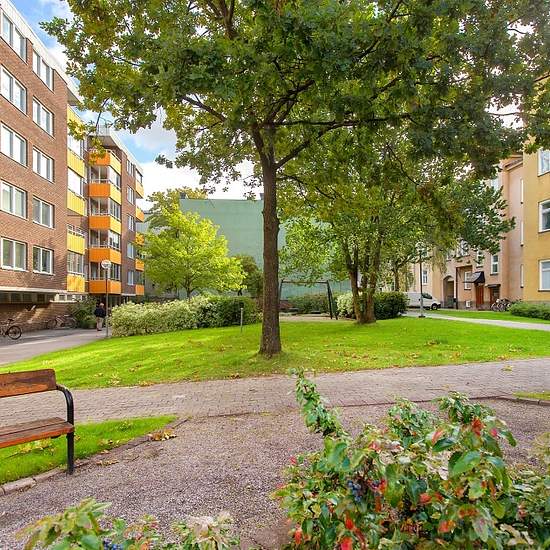 Välplanerad tvåa med nyrenoverat kök och en rymlig inglasad balkong som kan nyttjas större delen av året. Det moderna köket är utrustat med diskmaskin, induktionsspis och har plats för ett mindre matbord. Det helkaklade badrummet har glasade duschväggar och är förberett för installation av egen tvättmaskin. IMD tillämpas, varmvatten och el debiteras i efterhand efter faktisk förbrukning. Snabbt tillträde kan erbjudas eller enligt överenskommelse. Interiörbilder är från en liknande lägenhet i fastigheten. Lägenhet 312016-0118.