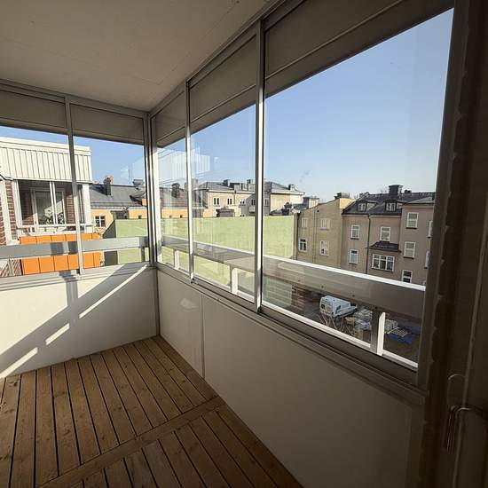 Ljus lägenhet med inglasad balkong och god förvaring Välkommen till denna fräscha och välplanerade bostad med rymliga ytor och praktiska lösningar. Lägenheten erbjuder ett trivsamt boende med bra planlösning och goda förvaringsmöjligheter. Hallen är mycket fräsch och har bra förvaring. I lägenheten finns även en klädkammare/förråd som ger extra förvaringsutrymme. Köket är fräscht och utrustat med diskmaskin. Vardagsrummet är stort och rymligt med plats för både soffgrupp och matplats, samt utgång till den inglasade balkongen. Sovrummet ä...