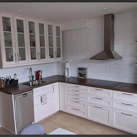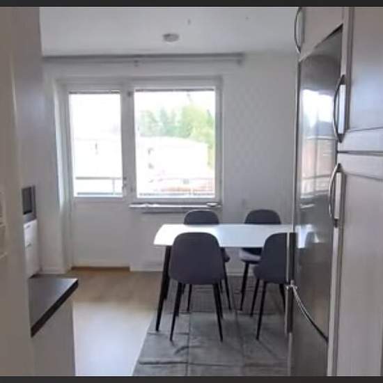 Perfect apartment for a couple or students with plenty of storage. The living room is spacious and can easily be partitioned to make room for additional beds. Designed to accommodate large furniture. Fridge/freezer purchased in 2024. Built-in microwave and oven. Washing machine and dishwasher are in the apartment. Broadband is included in the fee. Spacious balcony with a view of the lake. Close to nature and schools. Coop nearby, about a 5-minute walk. Laundry room in the same entrance on the ground floor. Carport and parking included, i.e....