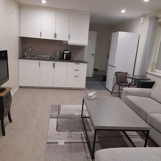 Private 42 sqm accommodation with its own entrance – fully furnished in Norsborg Norrskogsvägen 106, 145 72 Norsborg Rent: SEK 10,000/month Deposit: SEK 15,000 Size: 42 sqm Move-in: By agreement Welcome to a newly renovated, modern and completely separate dwelling with its own entrance in a courtyard house. Here you get your own little home where you don't share anything with anyone else – everything is yours! This is what you get: • Bright living room with large comfortable L-shaped gray corner sofa, sleek gray coffee table and large area...