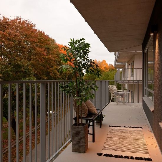 Modern hörnlägenhet med stor balkong! HALL I hallen möts du av ljusgrått klinkergolv och vitmålade väggar. Här finns platsbyggd garderob samt plats för avhängning. BADRUM Ljusgrått klinkergolv och vita helkaklade väggar. Här finns wc, handdukstork, dusch med glasvägg, handfat med kommod samt badrumsskåp med spegel och belysning. Badrummet är också utrustat med tvättmaskin och torktumlare med tillhörande arbetsbänk i grå laminat. KÖK Golv i eklaminat och vitmålade väggar. Vit köksinredning från Ballingslöv och handtag i rostfritt. Grå b...