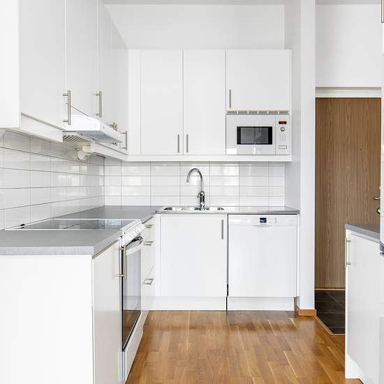 2 rum och kök i Sörbyängen. Genomgående vita väggar och ekparkett. I köket finns diskmaskin och inbyggd microvågsugn. I badrummet finns tvättmaskin Det finns även en tvättstuga i entréplan.