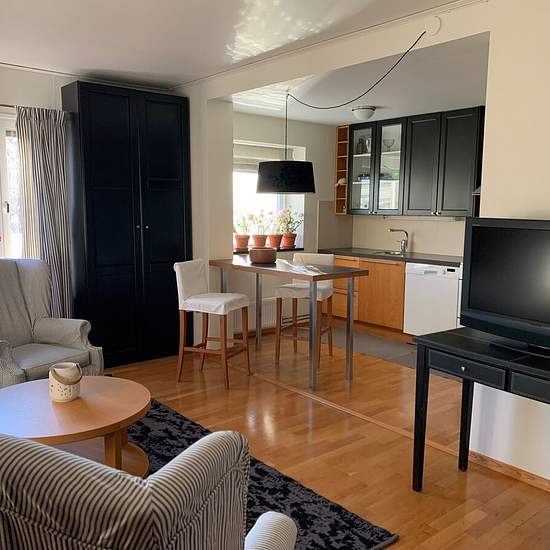 Fin nyrenoverad två:a om 50kvm uthyres möblerad. Öppen köksdel med fullrustat kök med porslin, kyl och frys, platt-TV. Genomgående ek-parkett, stort sovrum med 180 säng, och stort helkaklat badrum med dusch, Egen tvättmaskin och torktumlare. Del av villa med separat ingång och del av trädgård. Lägenheten ligger mitt i Österfärnebo, en trevlig by med bageri, ICA, bensinmack, pizzeria m.m. Nära till natur och friluftsliv i vackra Färnebofjärdens nationalpark och till gamla Gysinge bruk, med bl.a. PRO:s Folkhögskola. Bra kommunikationer för p...