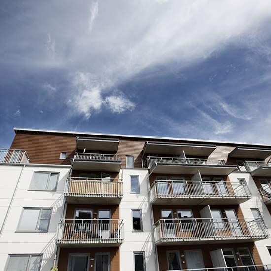 At the top of Stadsdel Norr, about a 10-minute walk from Östersund city centre, lies the Lugnet block. The area consists of four apartment buildings with five floors each. There are a total of 104 apartments with one to three rooms and a kitchen. The smallest is 28.4 m² and the largest is 70.2 m². All apartments have a balcony or a patio, and all buildings have an elevator. There is a laundry room and storage rooms in the basement. Adjacent to the buildings there are both parking spaces and carports available to rent. All 3-room apartments h...