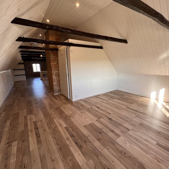 Well-planned apartment of 72 sqm in Påarp. On the entrance level, you are greeted by a practical hallway that leads to the kitchen, bathroom, and a cozy dining area. From here, there is also access to a private garden – perfect for relaxation or social moments outdoors. One floor up, the residence opens up to the roof ridge with visible rafters that create an airy and distinctive feeling. Here there is an open floor plan with a combined bedroom and living room, offering flexible furnishing options. The apartment includes a parking space. N...