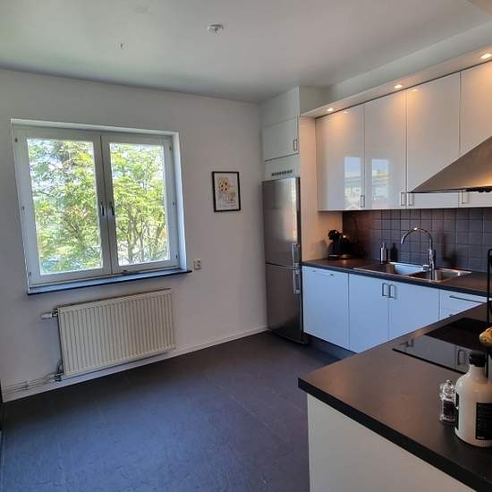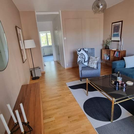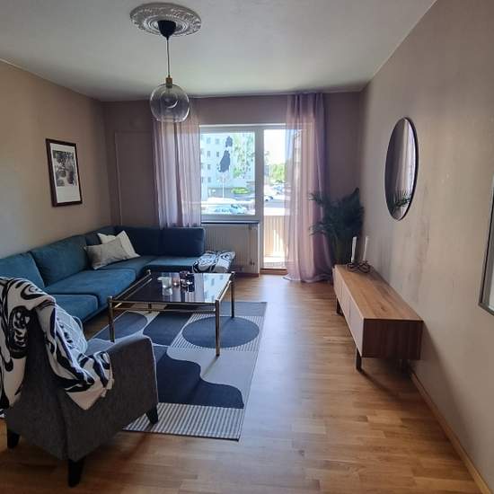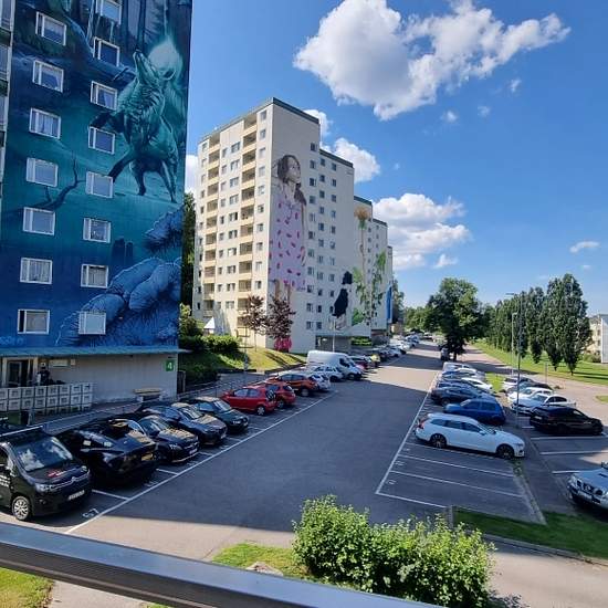 Charming one-bedroom apartment with high ceilings. The location provides morning sun in the bedroom and kitchen, and evening sun on the balcony. A 10-minute walk to the Allum shopping centre. The nearest bus stop is 2 minutes away, but for longer connections there are buses from Partille Centrum a 15-minute walk away, and the train station is a 20-minute walk away. For a parking space or garage you have to wait in a queue, but it usually doesn't take long before you get one.