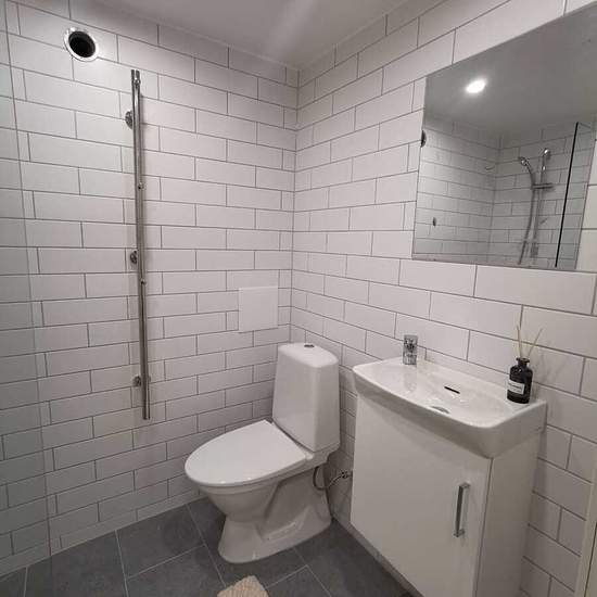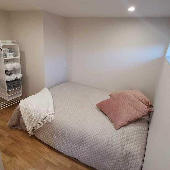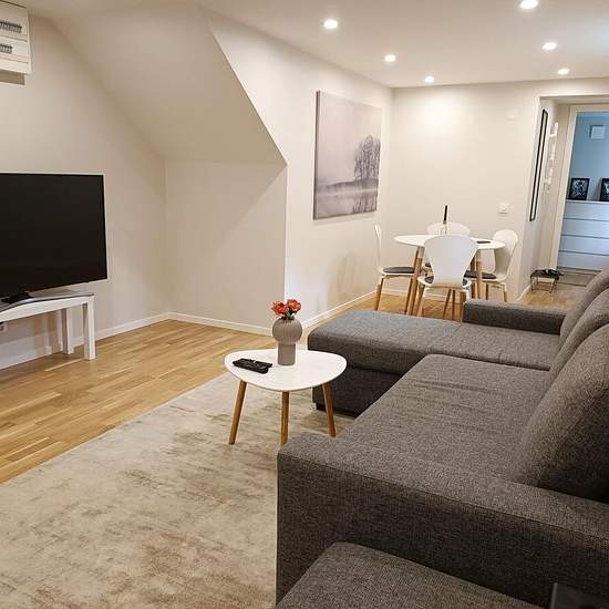 Welcome to a bright and fresh apartment that was completely renovated in January 2022. The apartment is located on the lower level of a house with its own entrance. Open floor plan between the kitchen and the living room, and a separate bedroom. The kitchen is fully equipped and the bathroom has a combined washer and dryer. (Parking available) We are a family of four (2 adults and 2 small children) who live upstairs. You have a separate entrance to the apartment. The accommodation has one bedroom and is best suited for one to two people, wi...