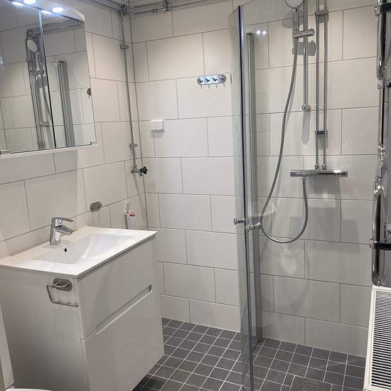 Renoverad lägenhet i mysiga Rimbo. Kök I dem moderna köken finns diskmaskin, energieffektiva kyl och frysskåp, högblanka skåpsluckor och en stilren samt tålig laminatbänkskiva. I köken finns samma vackra ekparkett som i resterande lägenheten. Badrum Badrummen är helkaklade med snygga duschväggar, kommod-och överskåpskomod, golvvärme samt handdukstork. Samtliga nyrenoverade badrum har fördragna El och vattenanslutningar för möjligheten att installera en egen tvättmaskin och torktumlare. Övriga ytskikt Samtliga nyrenoverade lägenheter h...