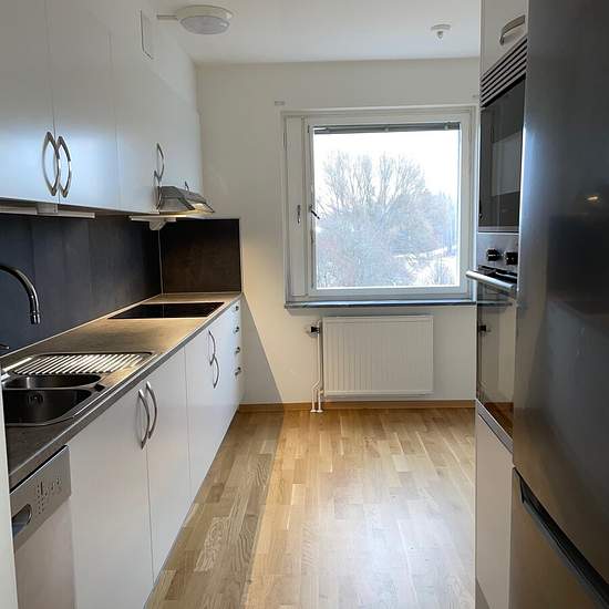 Renoverad lägenhet i mysiga Rimbo. Kök I de moderna köken finns diskmaskin, energieffektiva kyl och frysskåp, vita skåpsluckor och en stilren samt tålig laminatbänkskiva. I köken finns samma vackra ekparkett som i resterande lägenheten. Badrum Nytt helkaklat badrum med kommod, spegel och handfat, dusch-hörna i glas samt golvvärme, tvättmaskin och torktumlare ingår. Övriga ytskikt Samtliga nyrenoverade lägenheter har vitmålade väggar och ekparkett i samtliga rum. Lägenheten är lokaliserad i centrala Rimbo. Fastigheten ingår i ett omr...