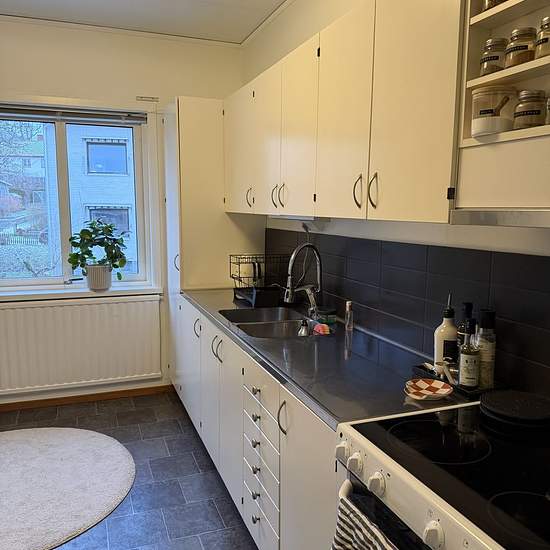 Trevlig 2 r.o.k på 61m2 med egen kombinerad tvättmaskin/torktumlare. Nära till både skola, torget, buss/tågstation och affärer. Fiber finns i lägenheten, behöver teckna eget abonnemang. Andra våningen. Liten innergård finns på baksidan.